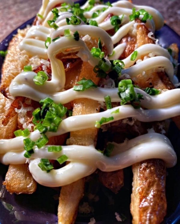 Hand cut pommes frites, black truffle cheddar, truffle aioli, truffle oil, chives