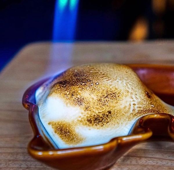 Tequila, Vanilla Bean Infused Aperol, Egg White, Pineapple Juice, Topped with Ancho Chili Powder